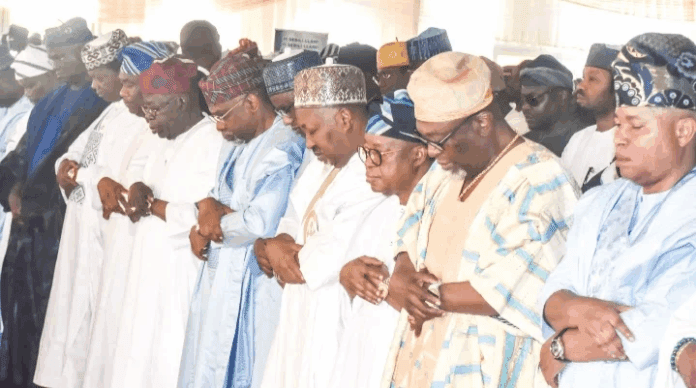 Some of the dignitaries at the prayer ground included, former minister of works and housing, Mr Babatunde Fashola and Minister of Blue Economy, Alhaji Gboyega Oyetola.